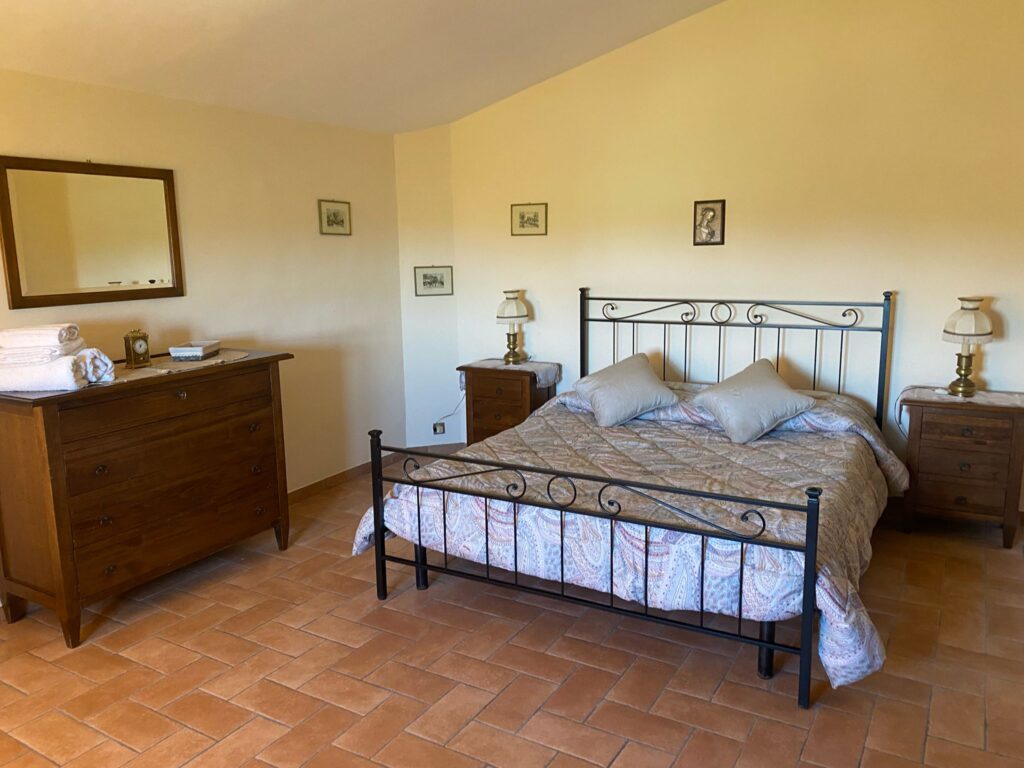 Al piano terra una vecchia cantina con botti in legno, una corte interna con un forno a legna. Al piano primo sono presenti un grande salone, una sala da pranzo e 5 spaziose camere matrimoniali con bagno privato, luminose e immerse in un’atmosfera di pace e tranquillità. Al piano secondo un altro grande salone su cui si affacciano altre 5 camere matrimoniali, due bagni, uno studio e una bellissima terrazza panoramica.